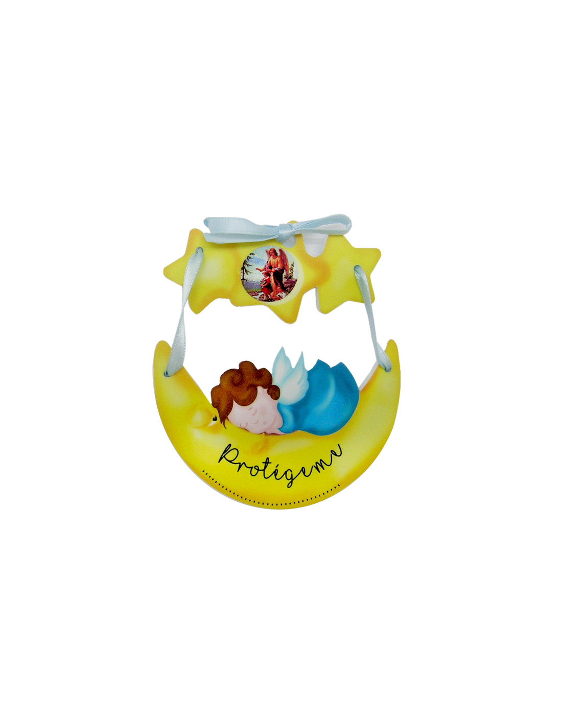 Medalla Cuna Angelito Dormido Sobre Luna Y Estrellas En Blister