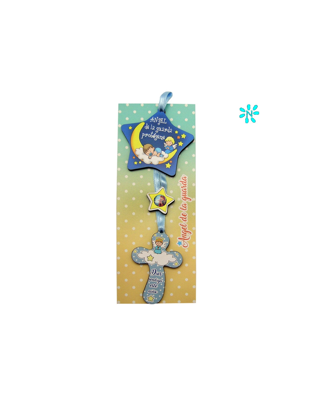 Medalla Cuna Estrella Angel De La Guarda Azul Con Cruz Personalizable