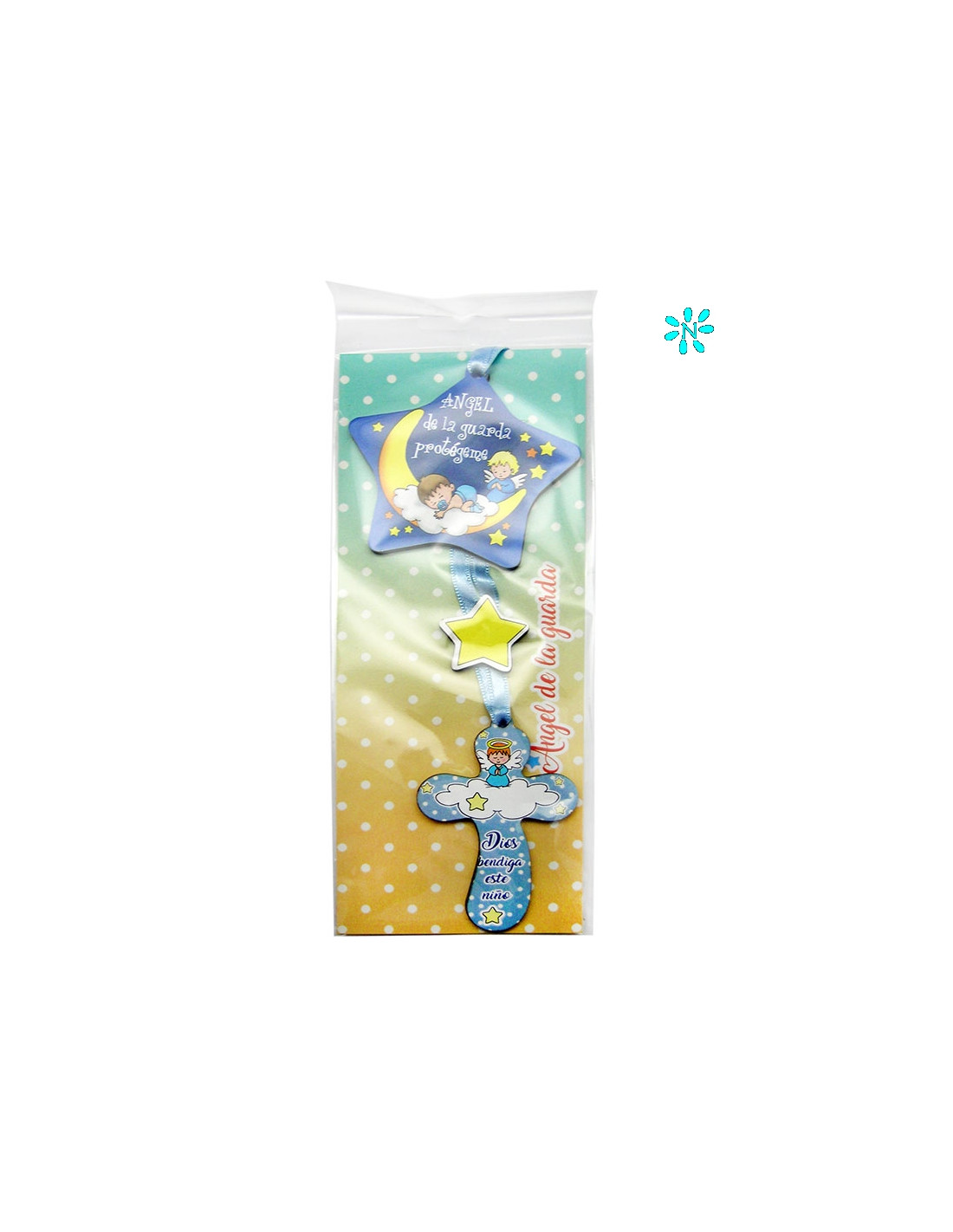 Medalla Cuna Estrella Angel De La Guarda Azul Con Cruz Personalizable