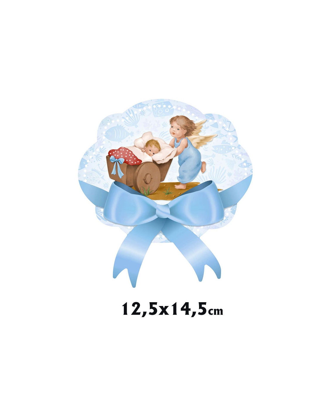 Medalla Cuna Metacrilato 14. 5X12. 5Cm Angelito Llevando Carrito Celeste