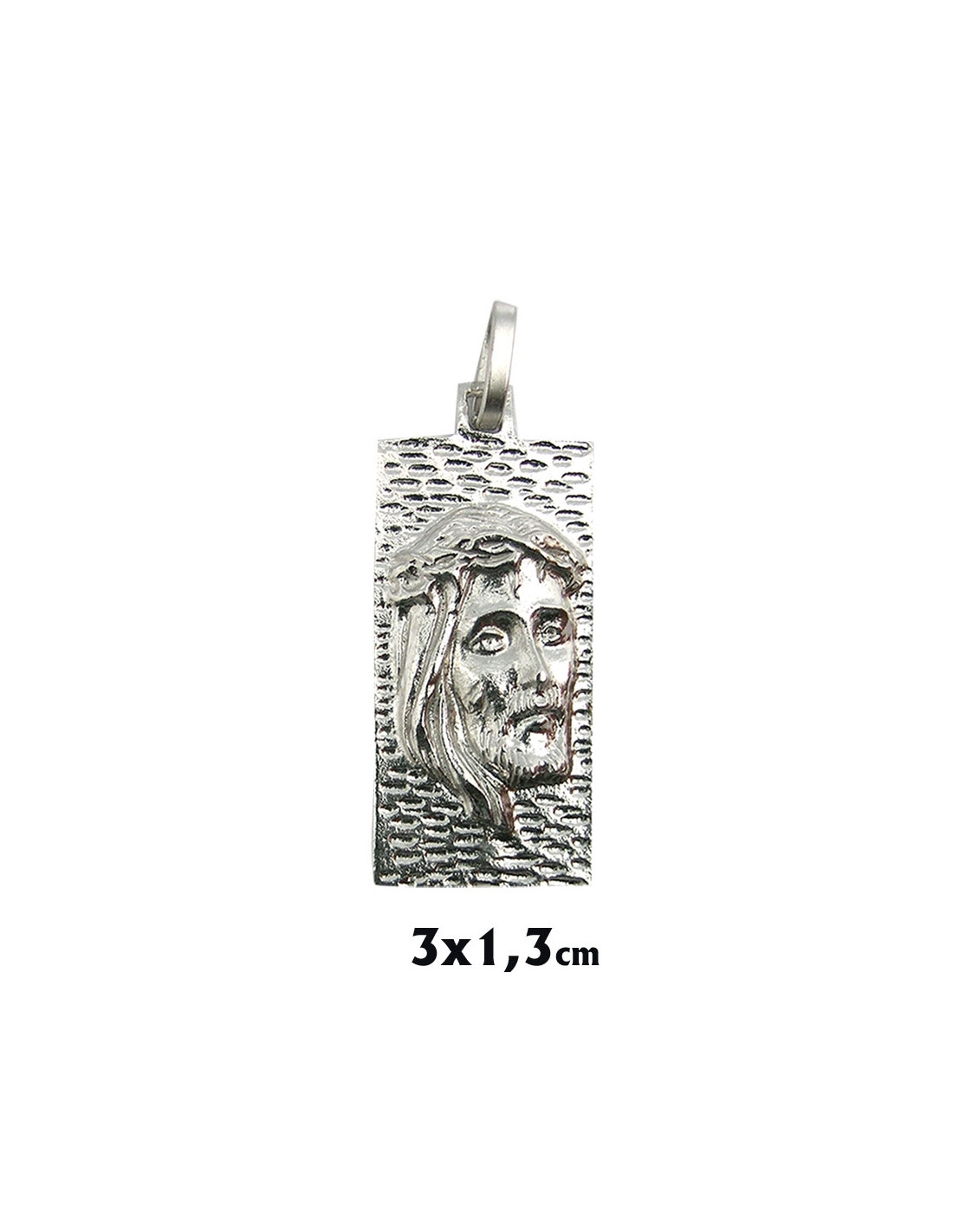 Colgante Plata Rectangular Cara Cristo 30X14mm Fondo Rayado