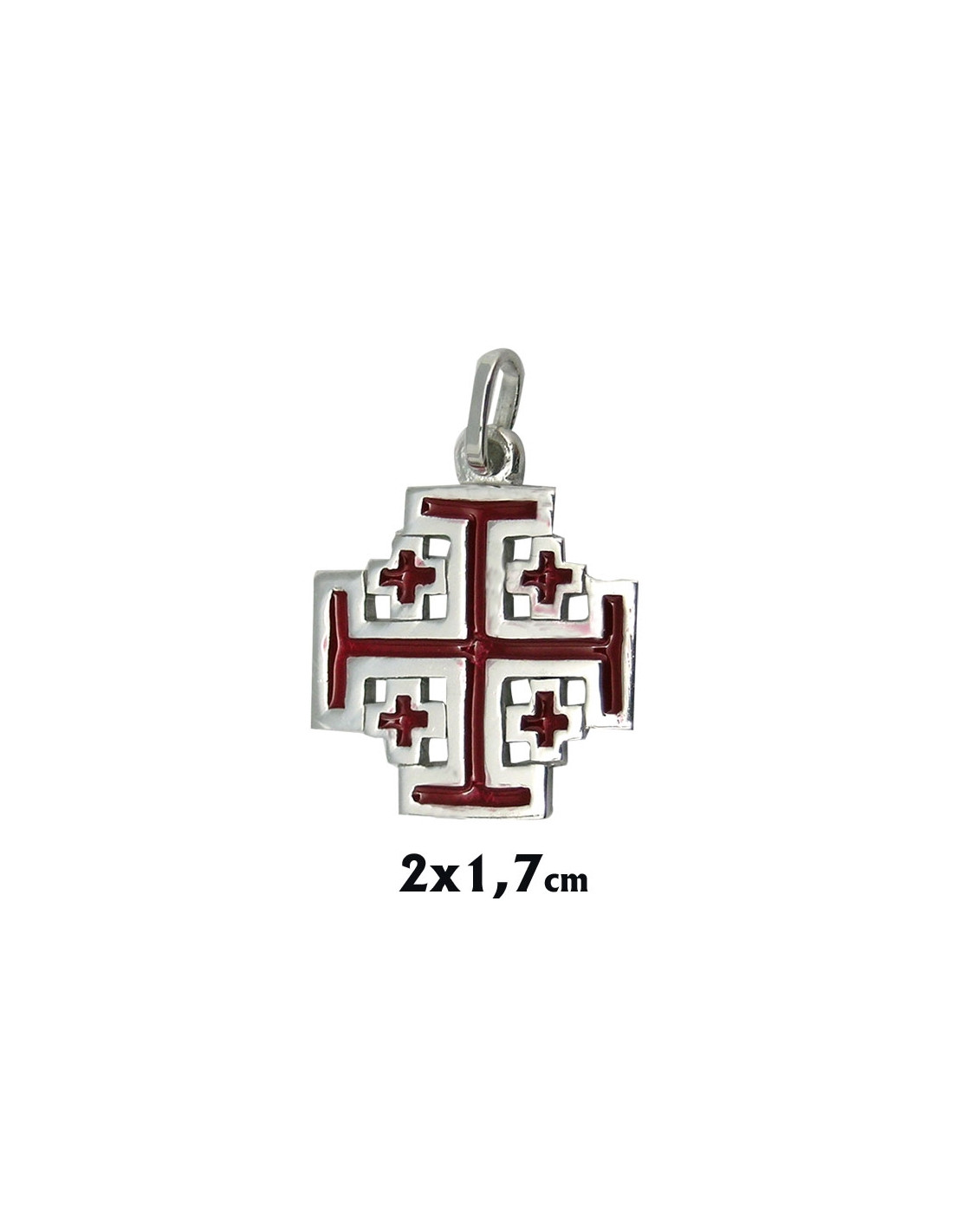 Cruz Plata Jerusalen Con Esmalte Rojo 12X12mm
