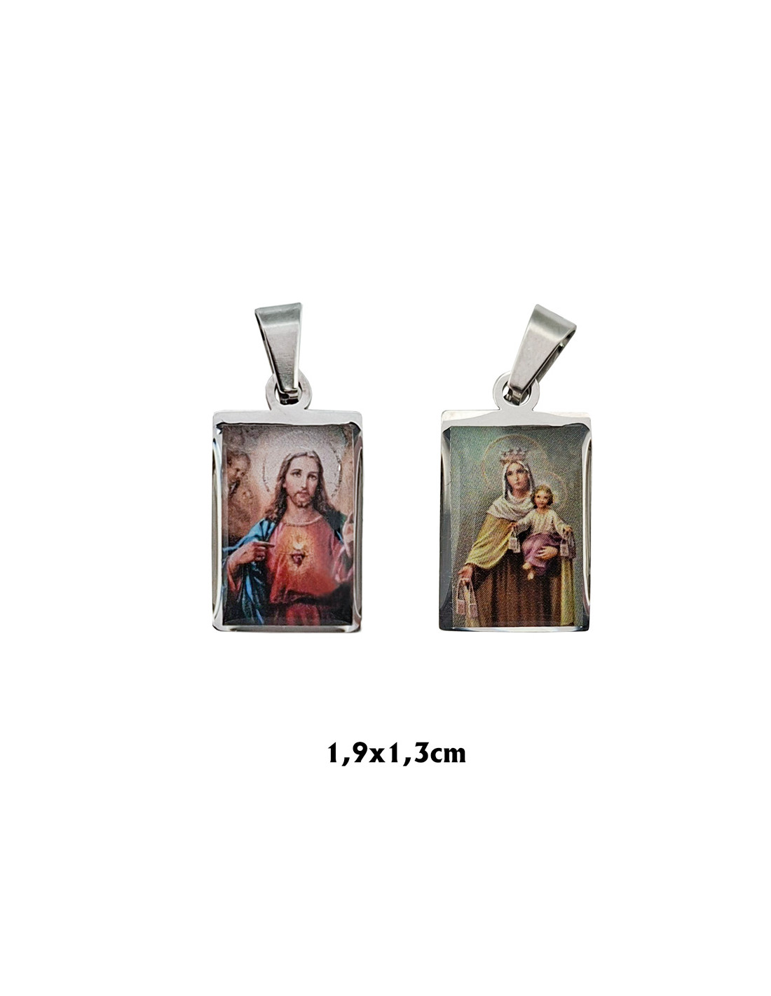 Medalla Colgante Escapulario Acero 1.9X1.3Cm Foto 2 Lados Esmalte Duro