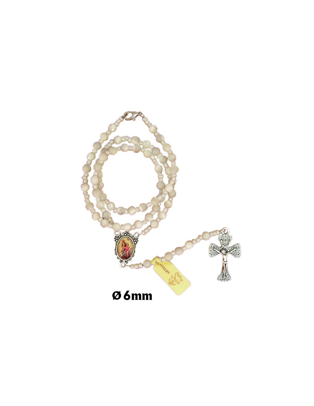 Rosario Nacar 6Mm Con Bolitas Cristal Trasparentes Mini Intercaladas