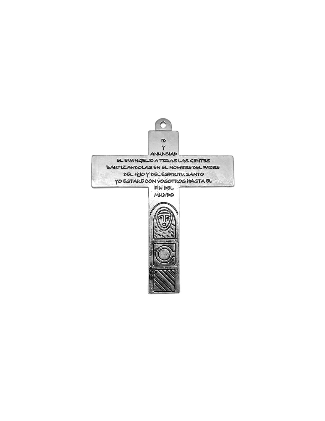 La Cruz Familiar o Cruz de las Familias tiene en su parte delantera a Cristo Crucificado, que representa para todos nosotros el acto supremo de la entrega de Jesús. En la parte de atrás está la Virgen María, modelo de humildad y sencillez. Es Ella quien mantiene viva la misión del anuncio del Evangelio.