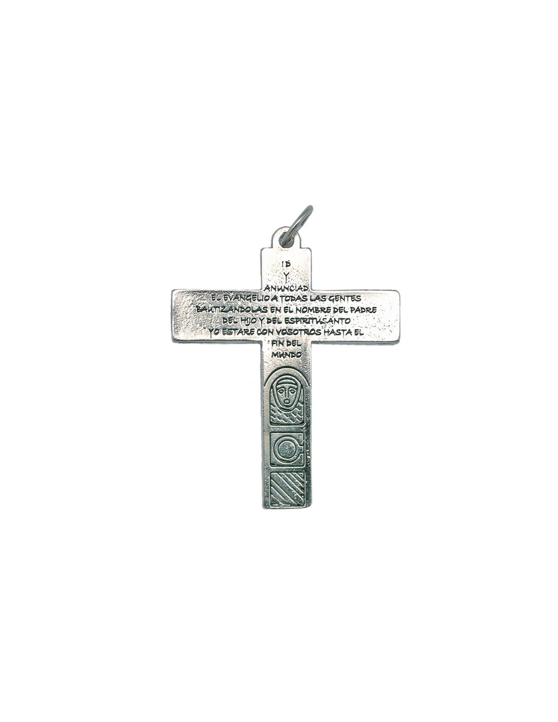 La Cruz Familiar o Cruz de las Familias tiene en su parte delantera a Cristo Crucificado, que representa para todos nosotros el acto supremo de la entrega de Jesús. En la parte de atrás está la Virgen María, modelo de humildad y sencillez. Es Ella quien mantiene viva la misión del anuncio del Evangelio.