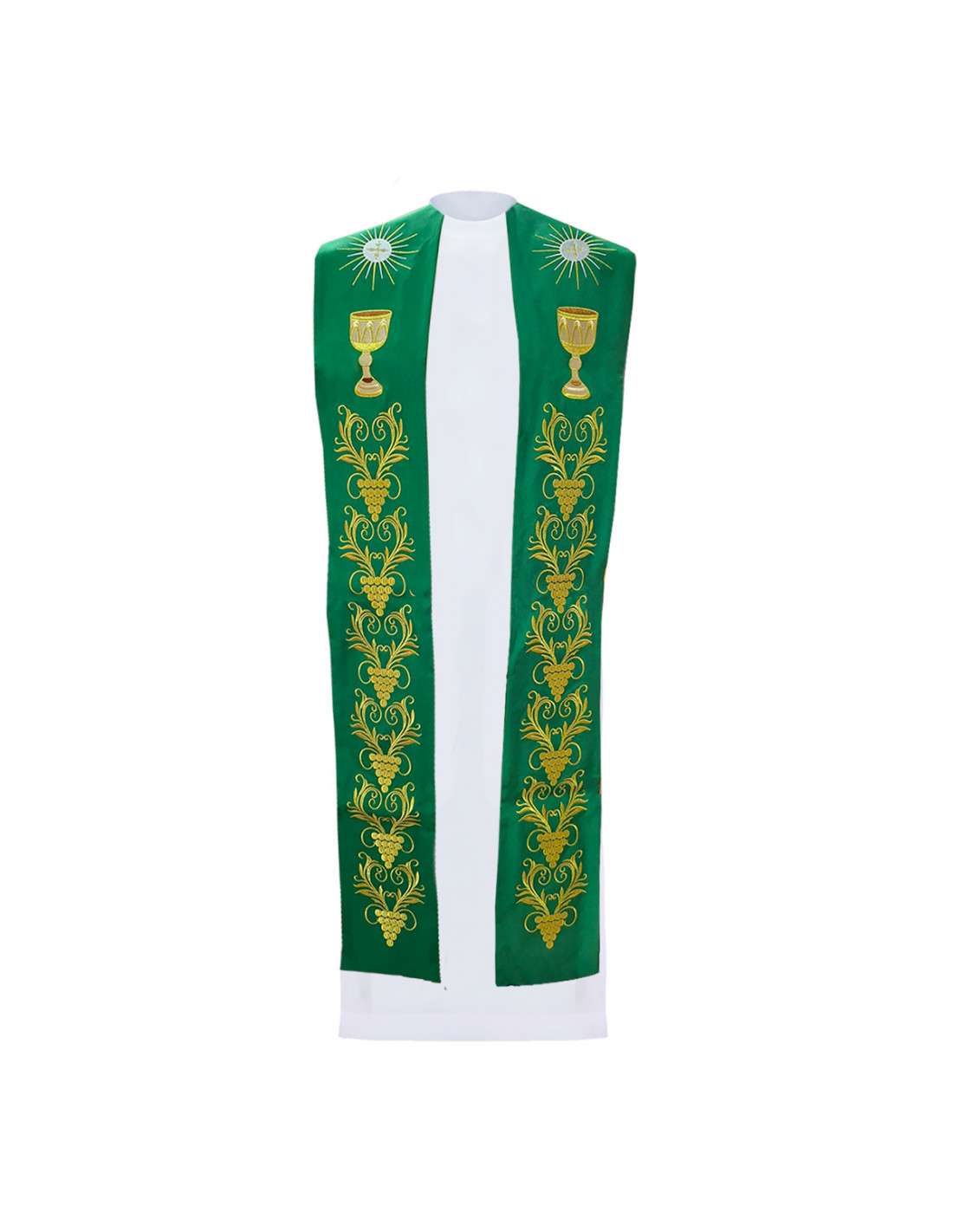 Estola Bordada Caliz Forma Con Rayos Y 6 Racimos De Uvas Con Adornos Verde