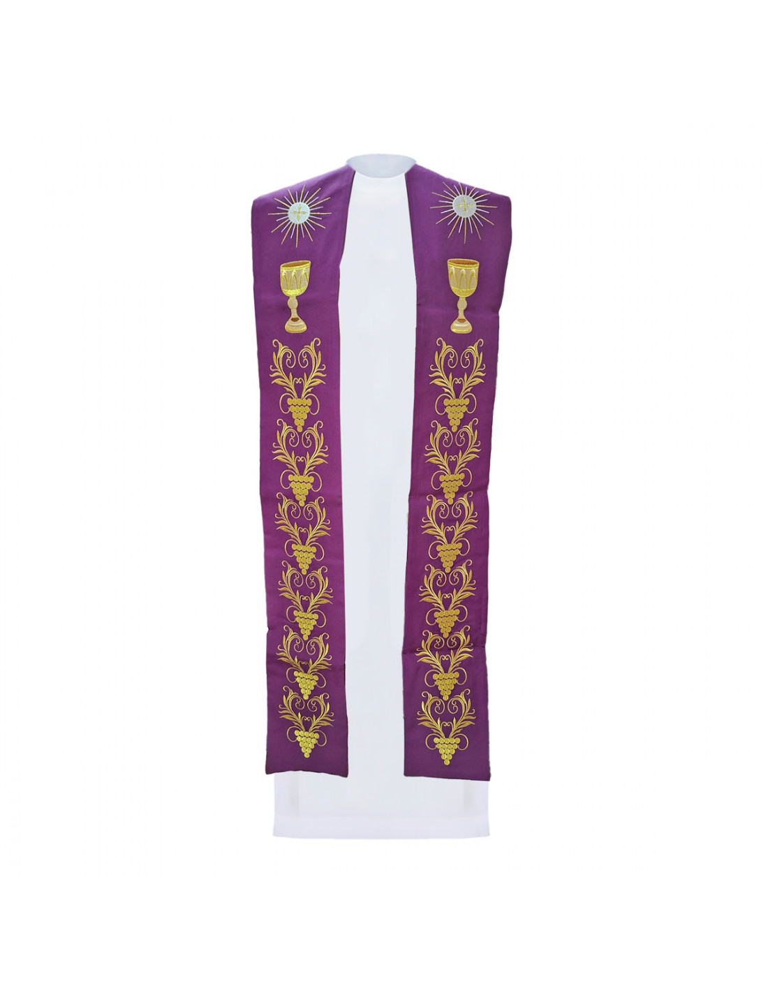Estola Bordada Caliz Forma Con Rayos Y 6 Racimos De Uvas Con Adornos Morada