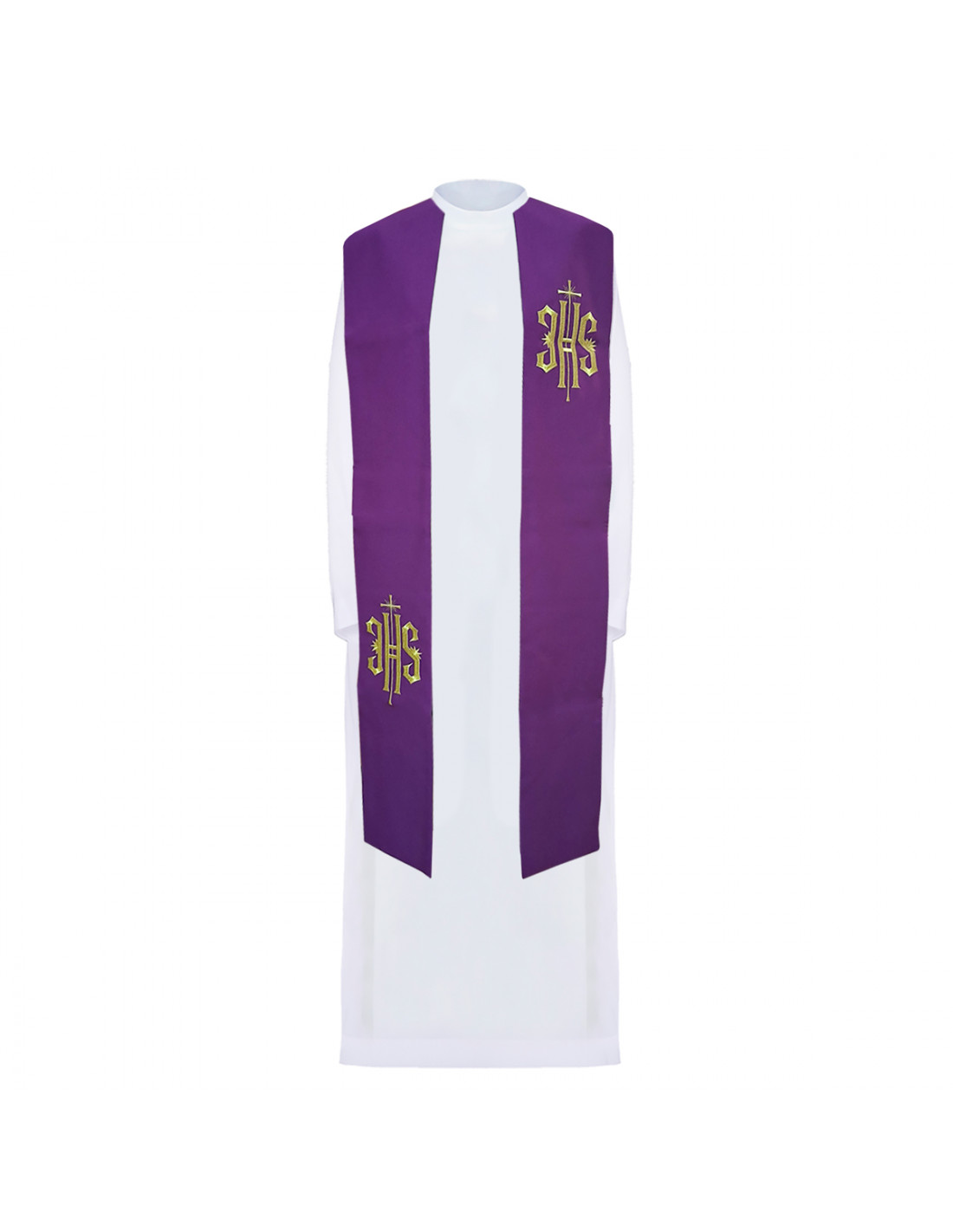 Estola Bordada Jhs Con Cruz Larga A Dos Alturas Morada