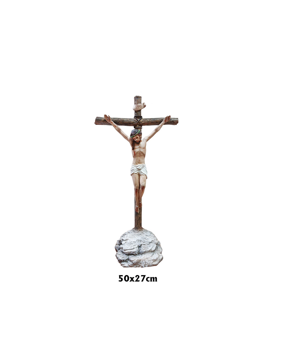 Crucifijo Resina Base Con Cristo 50x27cm En Resina Policromada