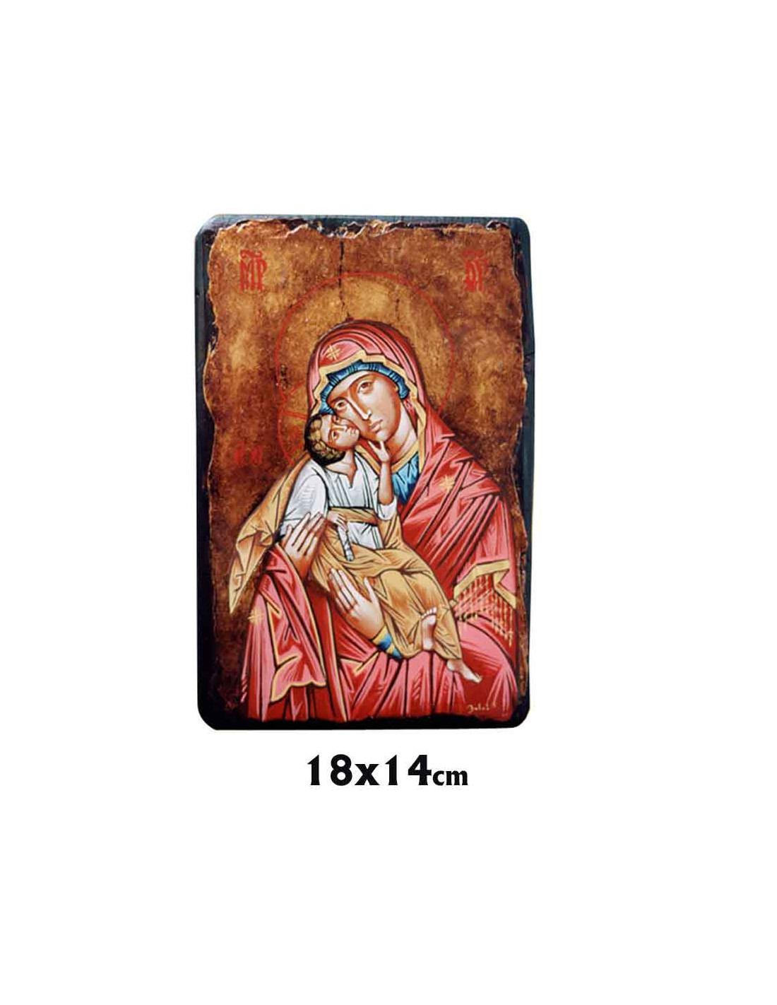 Icono Madera Pintado A Mano Acabado Antiguo 14X18cm Niño Besa En La Mejilla