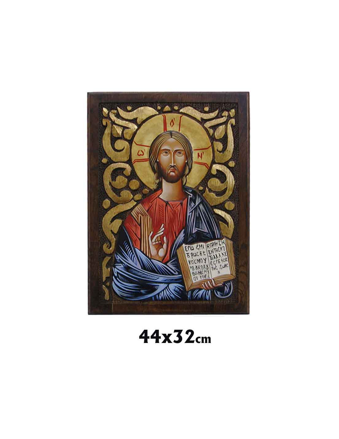 Icono Madera Pintado A Mano Fondo Tallado Y Borde Recto Pantocrator 32X44cm