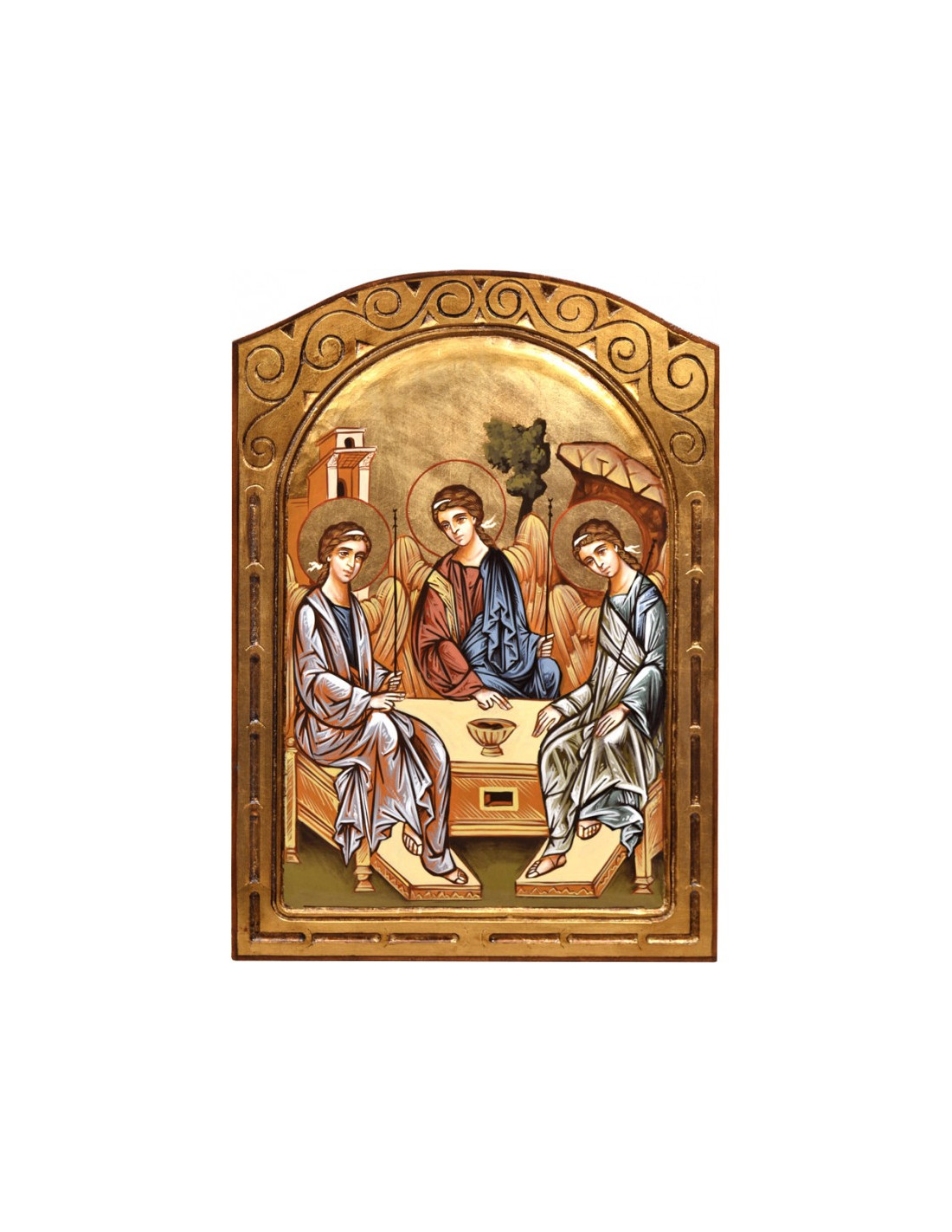 Icono Madera Pintado A Mano Forma Cupula 44X32cm Trinidad Borde Tallado