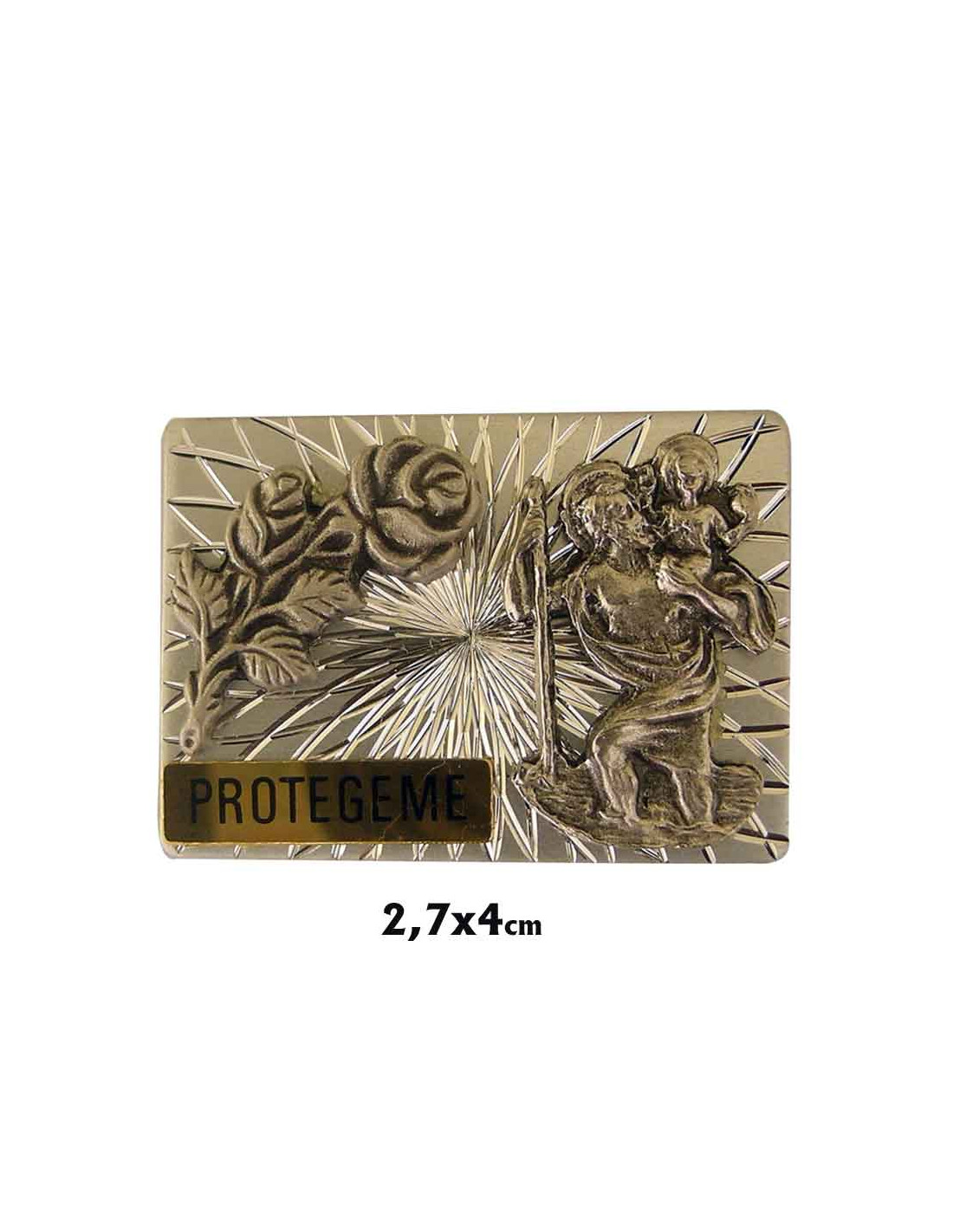 Placa Coche Rectangular Niquelada San Cristobal Y Rosa Metal