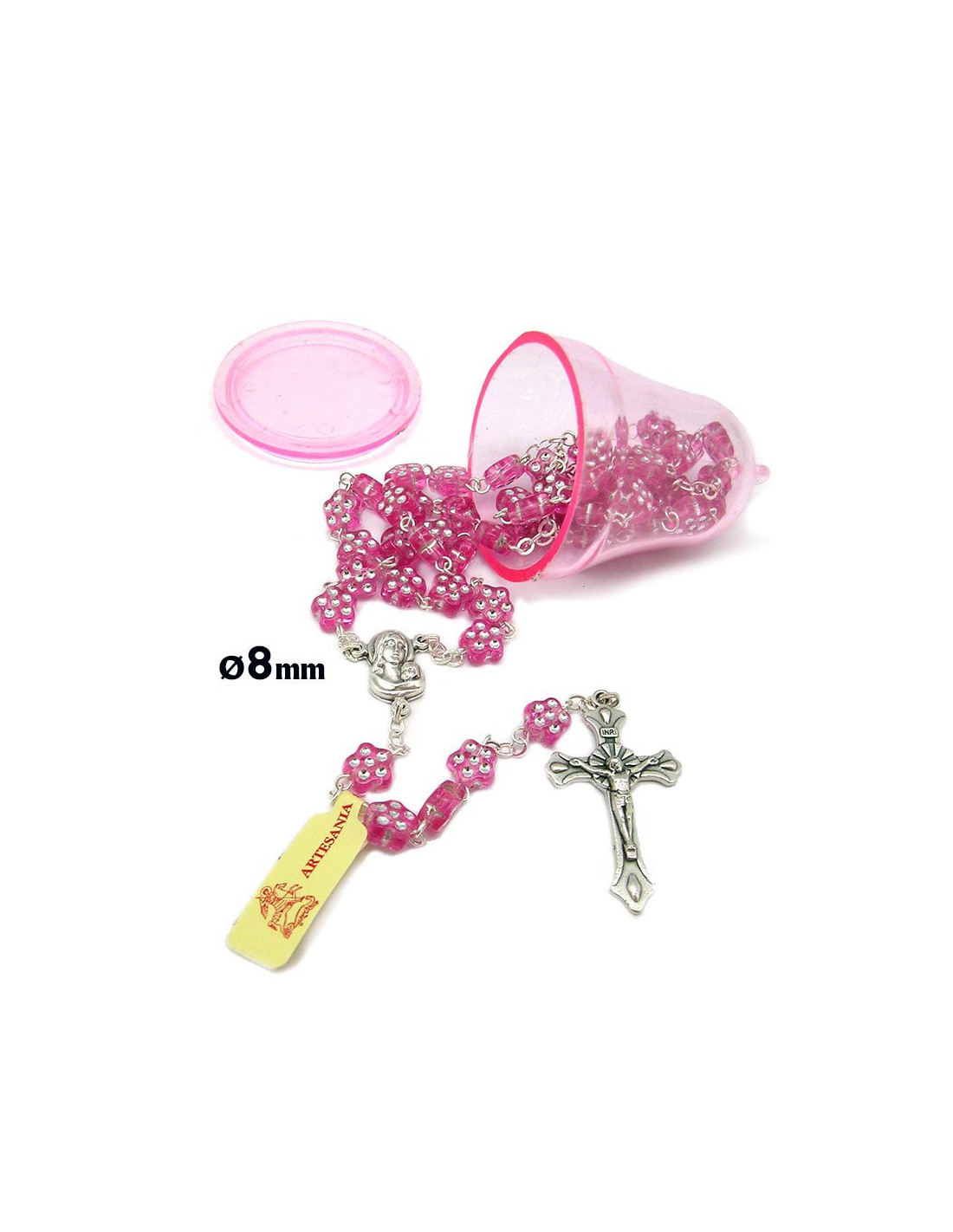 Rosario Plastico Grano Flor Brillante Caja Campana