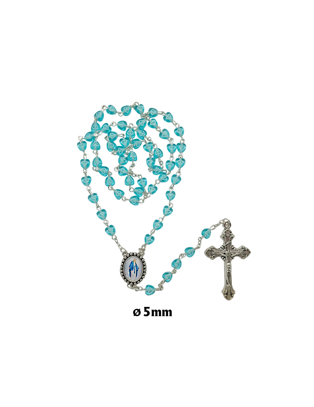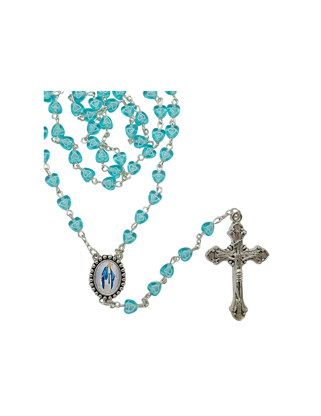 Rosario Plastico Corazon Azul Celeste 6Mm Con Corazon Blanco Interno
