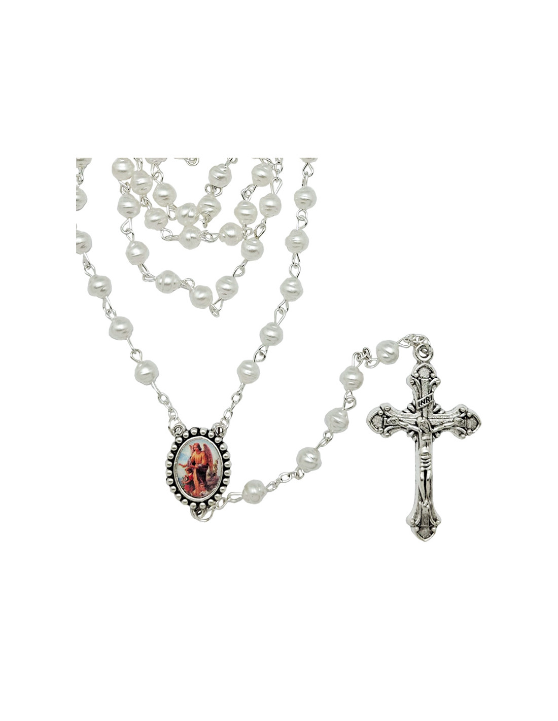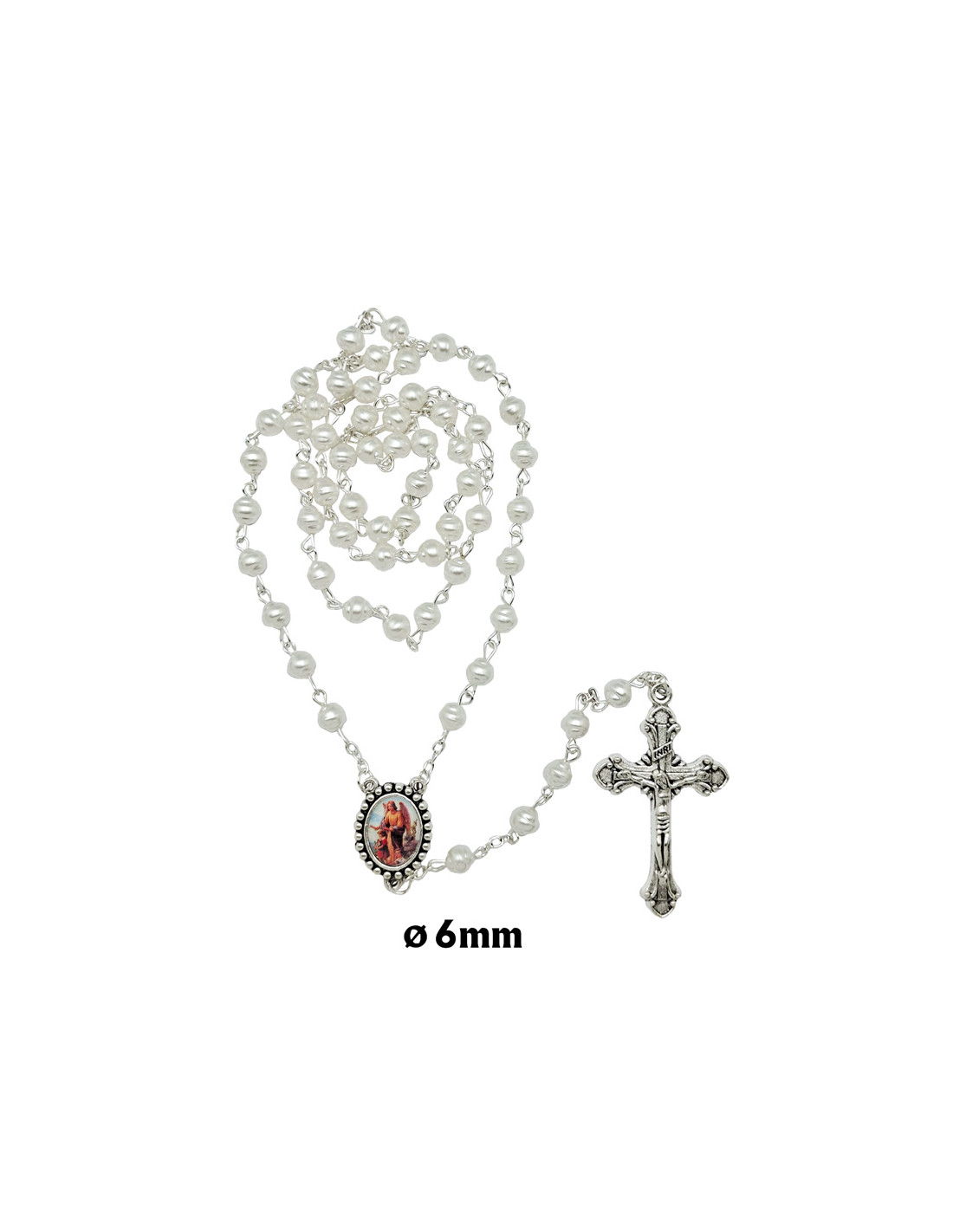 Rosario Plastico Blanco Perla Rayada 6Mm