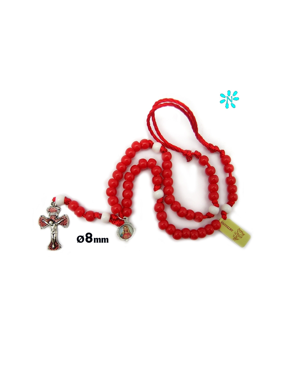 Rosario Plastico 8Mm Rojo Cuerda Roja Y Paters Blancos Con Cruz Esmaltada