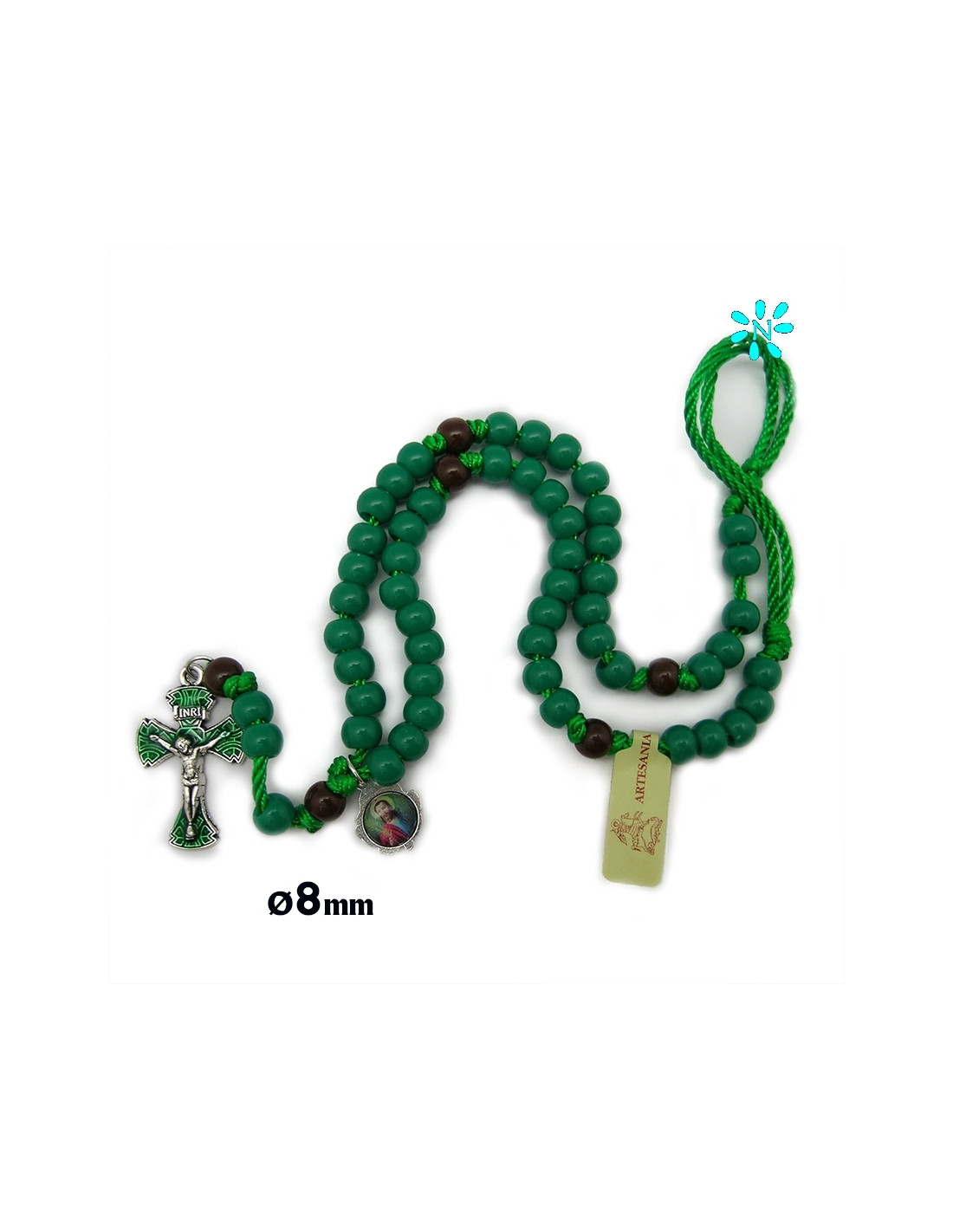 Rosario Plastico 8Mm Verde Cuerda Verde Y Paters Blancos Con Cruz Esmaltada