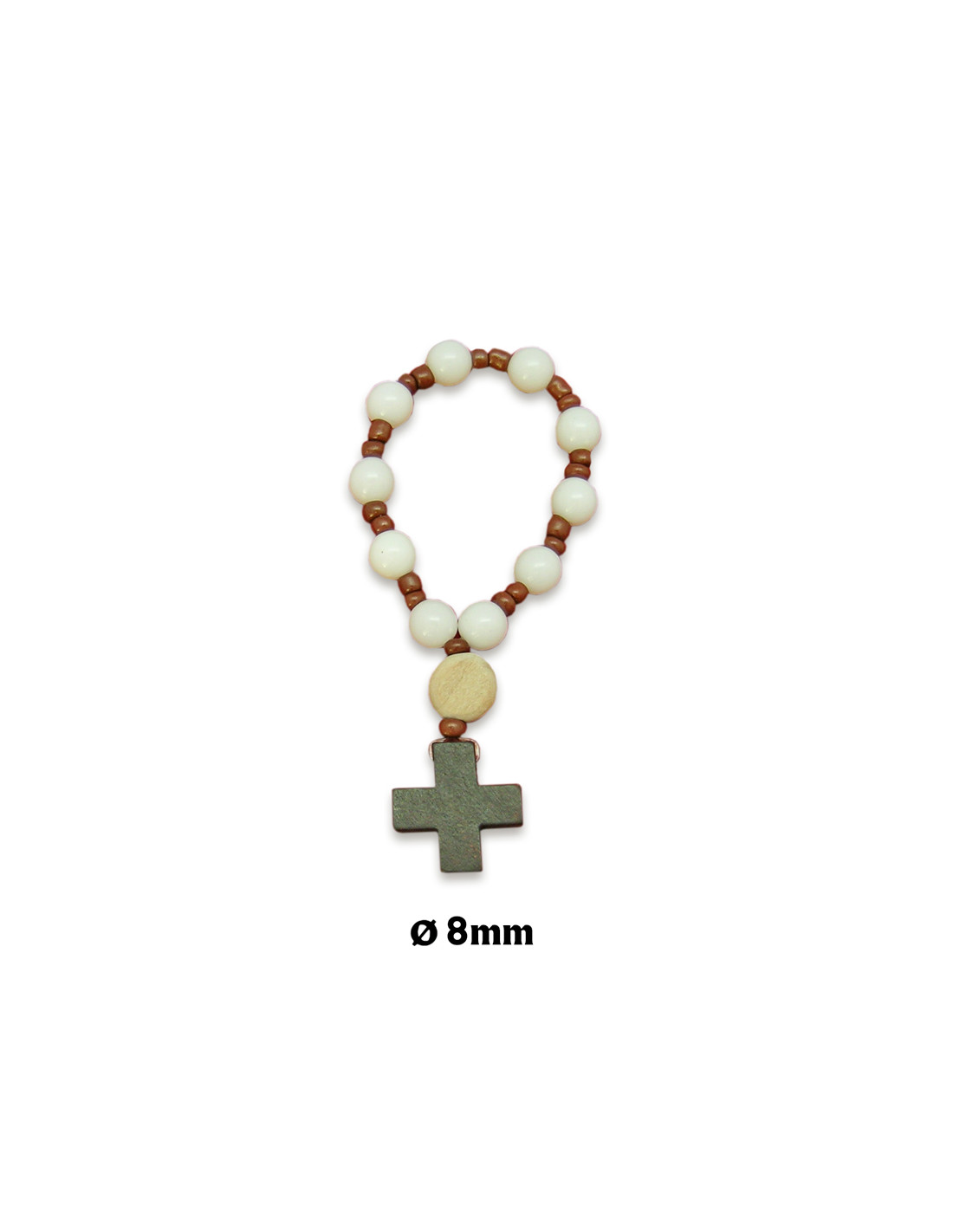 Rosario De Dedo Bola Blanca 8 Mm Con Cruz Madera Oscura