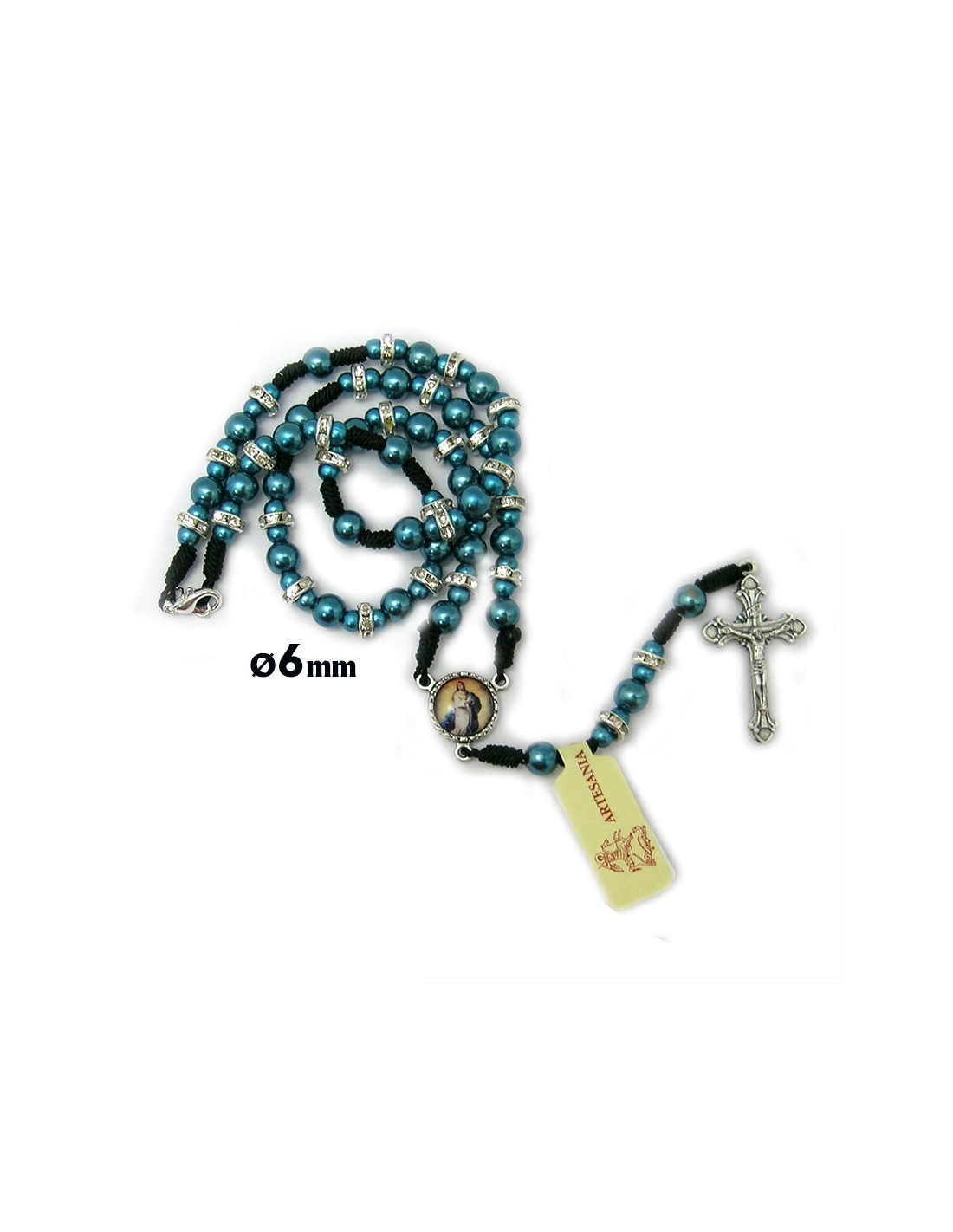 Rosario Plastico 6 Mm Azul Liso En Cuerda Con Disco Circonitas Y Mosqueton