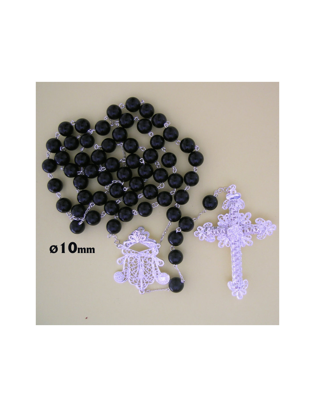 Rosario Azabache 10Mm Y Plata Filigrama