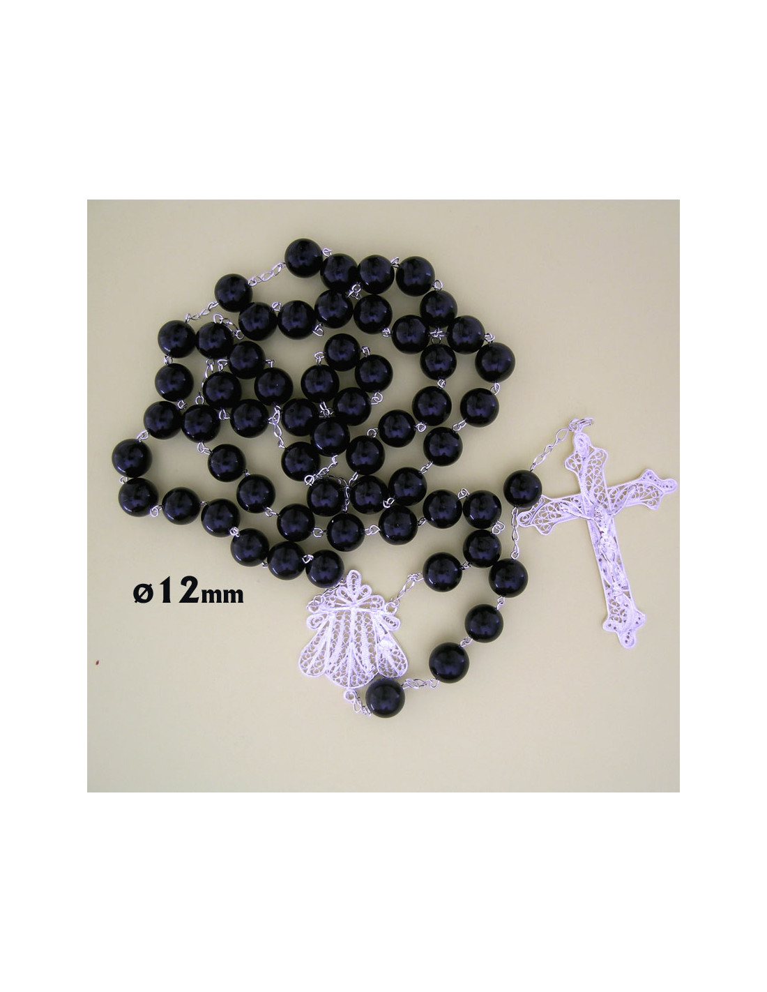 Rosario Azabache 12Mm Y Plata Filigrama