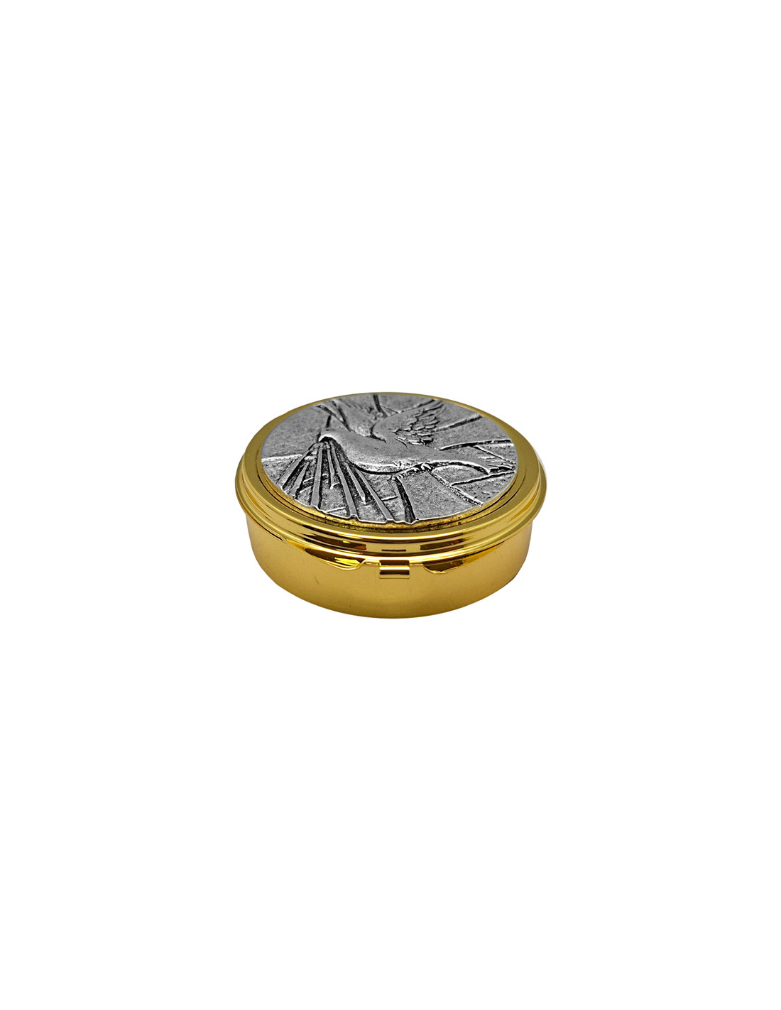 Portaviatico Caja Dorada Placa Superior Relieve Plateada Paloma 6.2X2 Cm