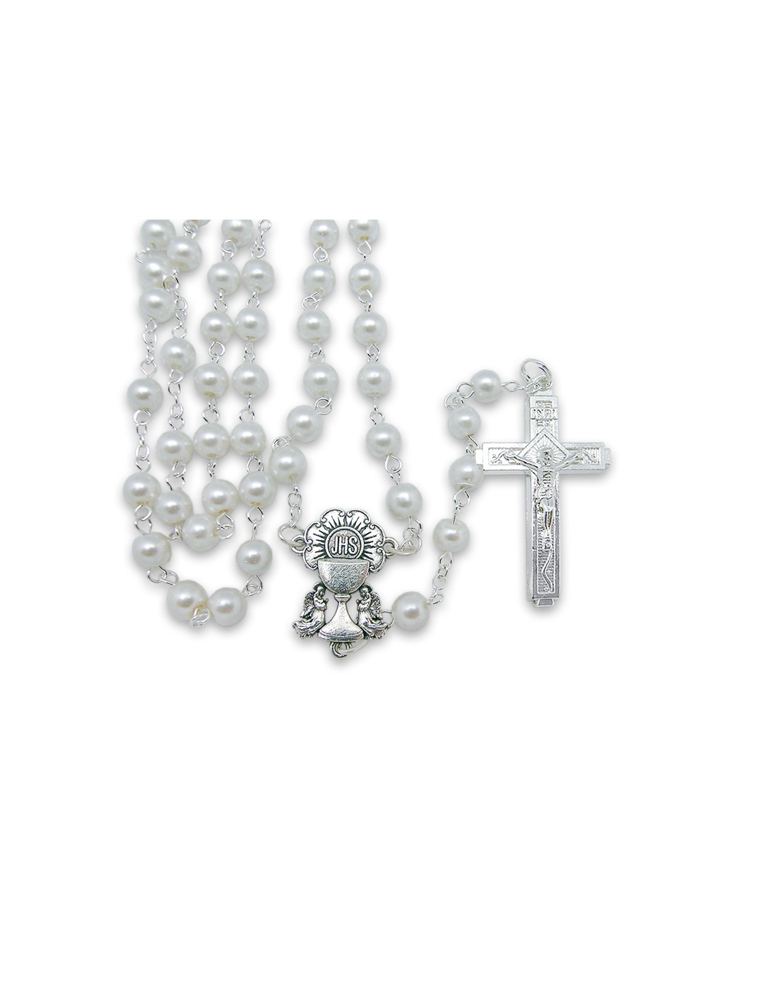 Rosario Cristal Imitacion Perla 6mm Primera Comunion