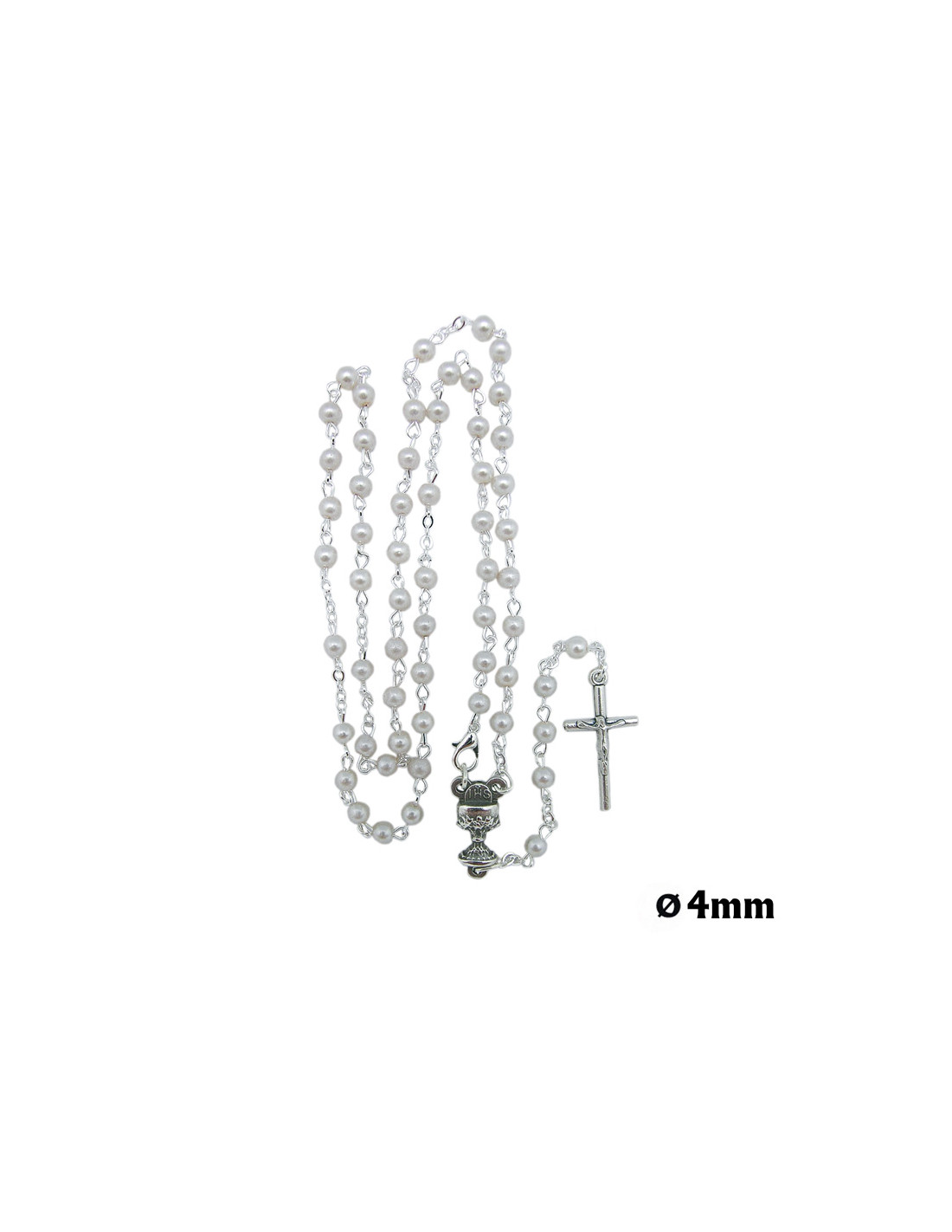 Rosario Cristal 4Mm Imitacion Perla Primera Comunion En Caja