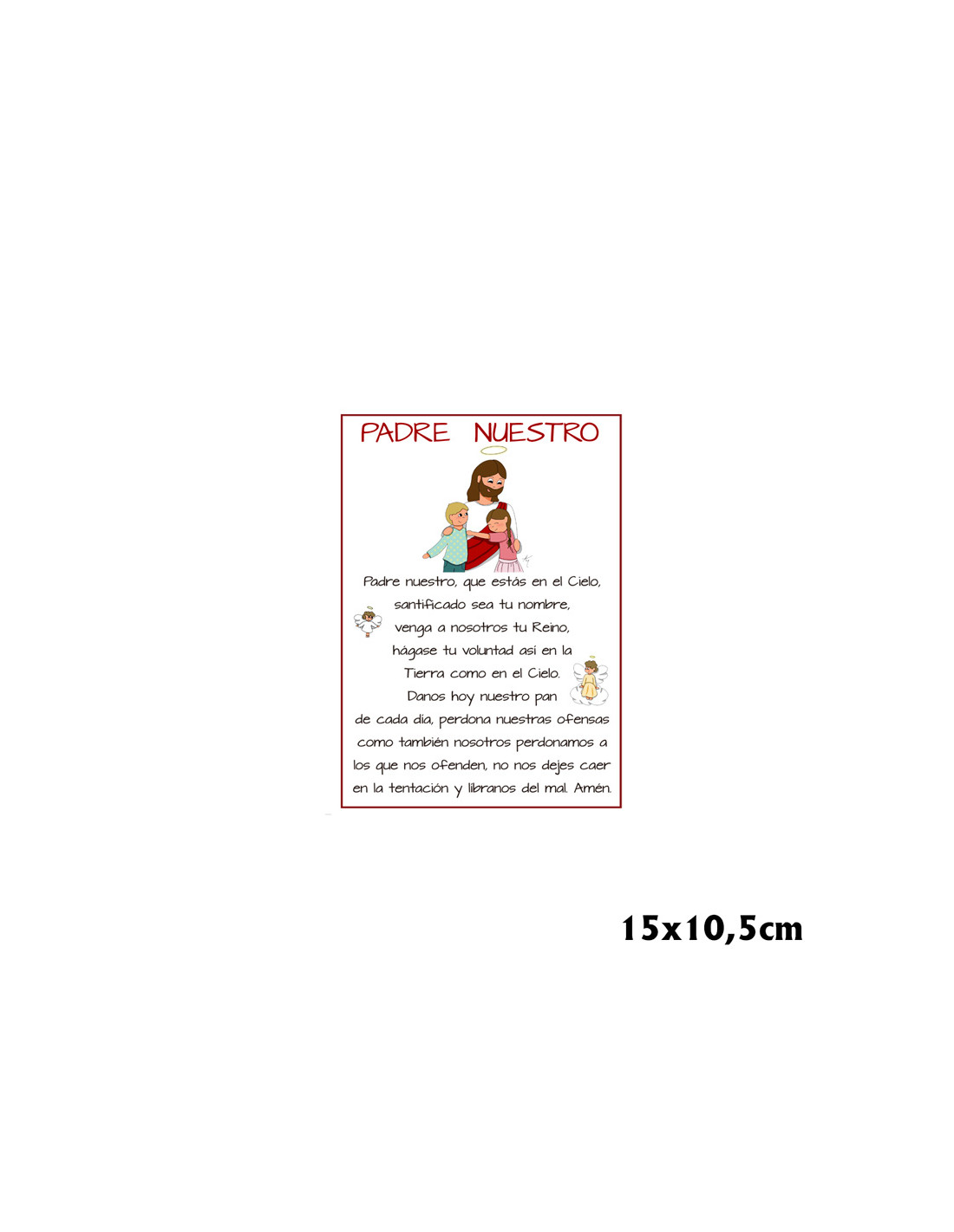 Postal con el Padre Nuestro, pensada para los más pequeños. Letra clara sobre fondo blanco para facilitar la lectura. El dibujo muestra a Jesús acogiendo con ternura a los niños, invitándolos a vivir su amor. Ilustración actual de @bajomipuntodevista, con la que los peques se sentirán identificados. Medida 15x10,5 cm. Ideal para repartir en catequesis. También disponible en lámina.