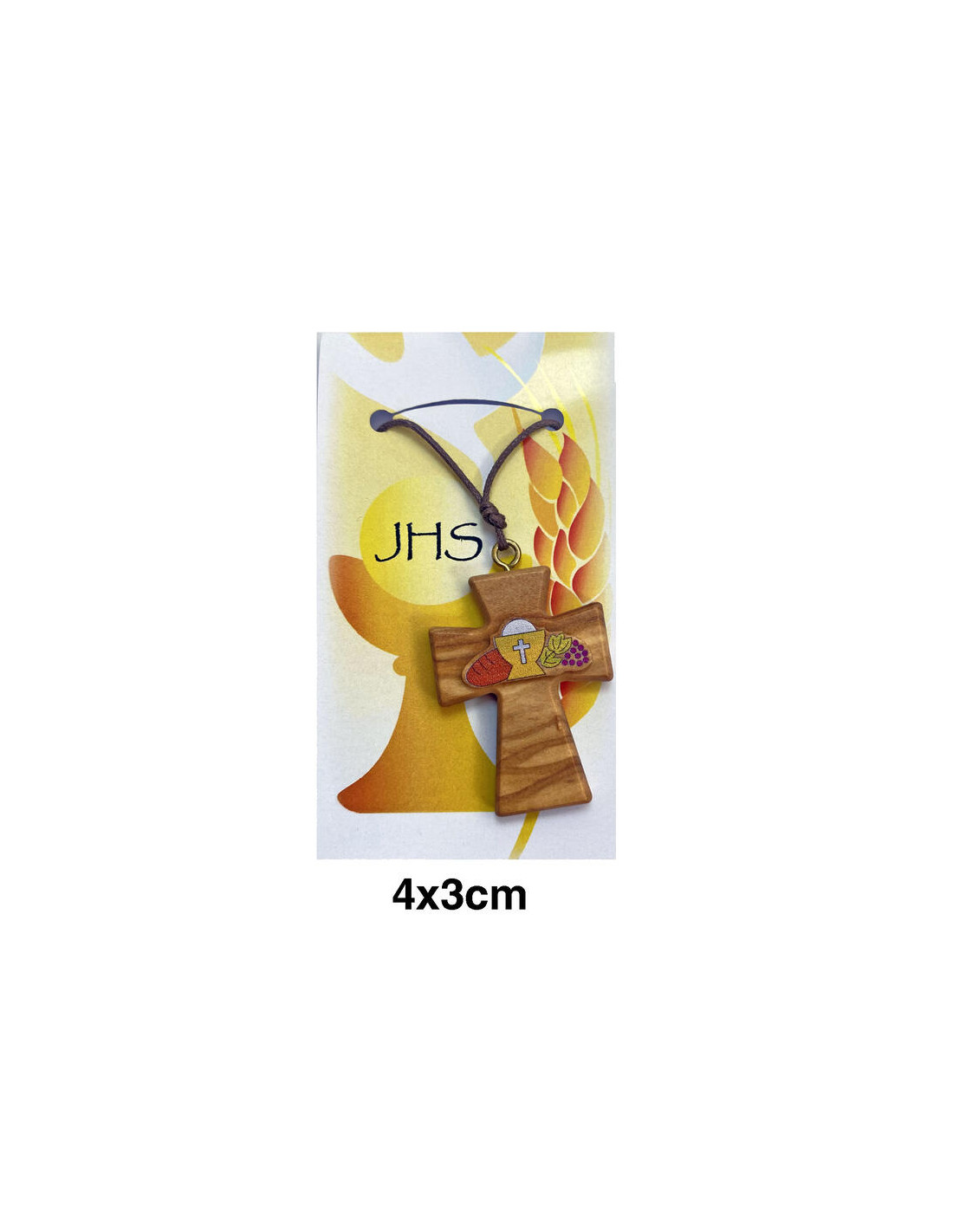Cruz Madera Olivo Pintada Primera Comunion 4X3cm Relieve