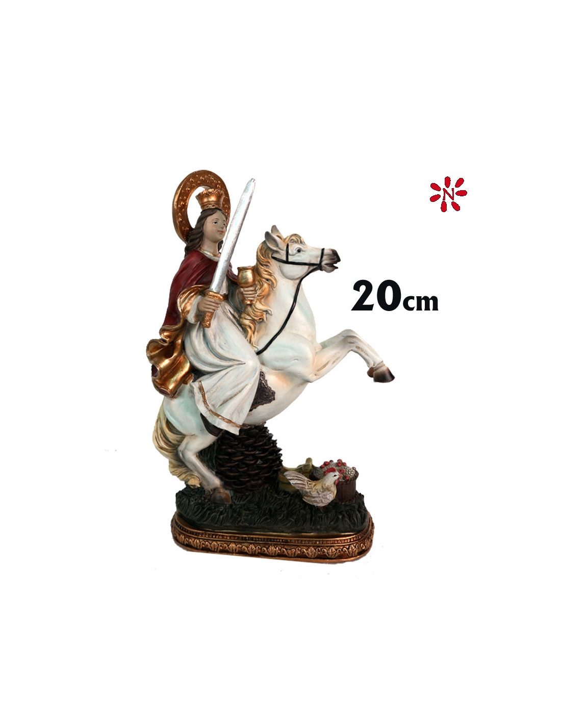 Santa Barbara A Caballo Res 20cm Base Redonda Dorada