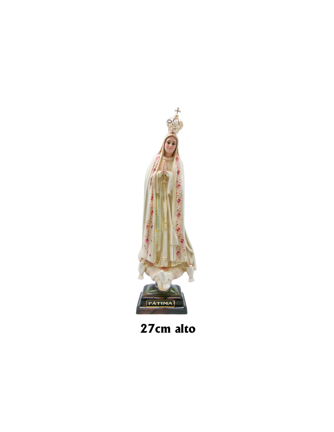 Virgen De Fatima Res 27Cm Envejecida Floral Rosa