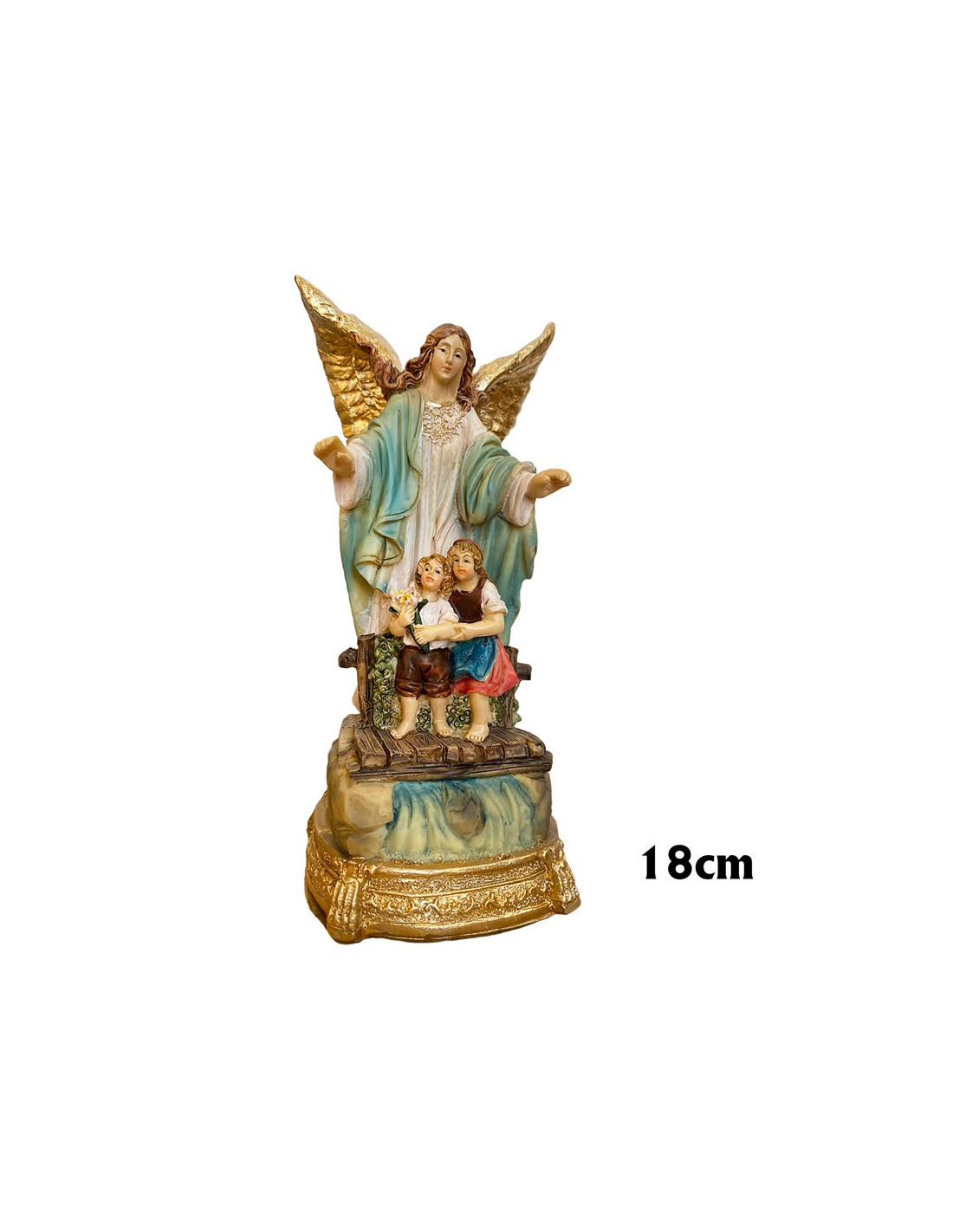 Angel Guarda Res 18Cm Con Niño Y Niña En El Puente Pr13