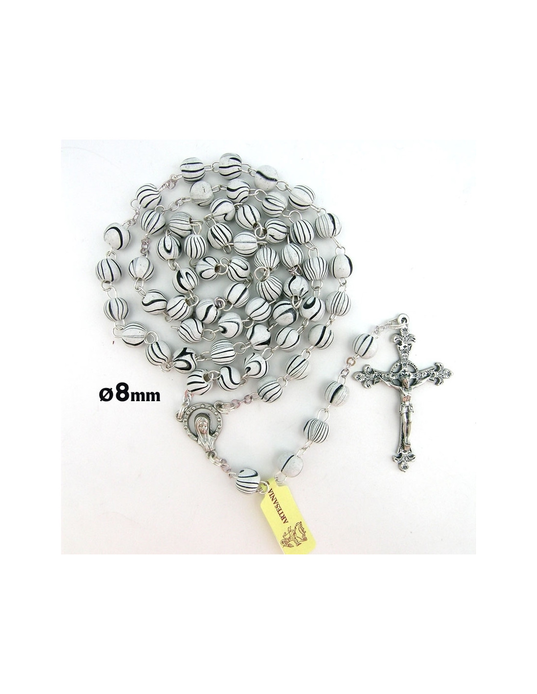 Rosario Madera Redondo 8mm Rayas Negras