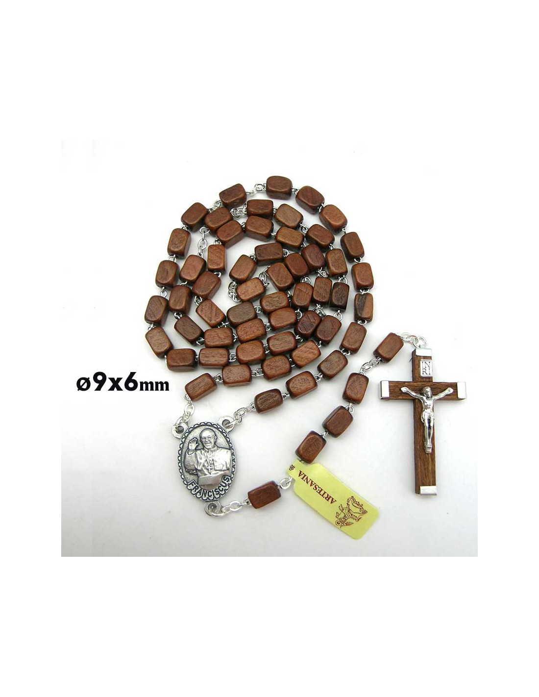 Rosario Madera Rectangular 9X6mm Papa Francisco