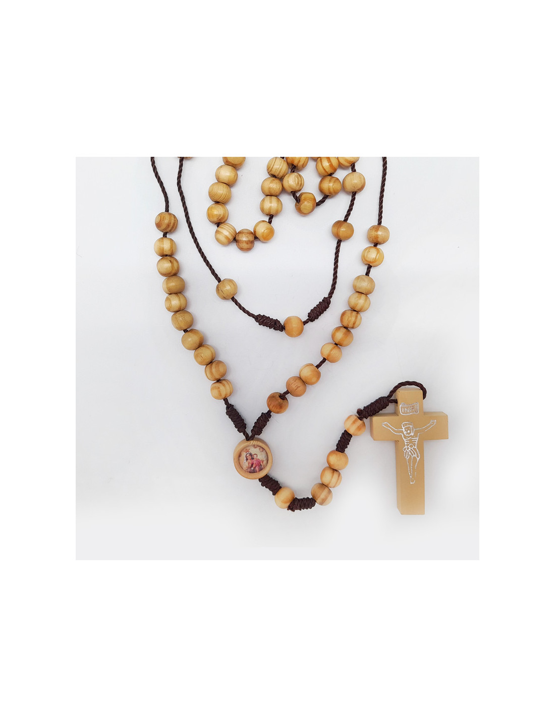 Rosario Madera 6Mm Tipo Olivo Con Cuerda Cruz Grabada Para Personalizar