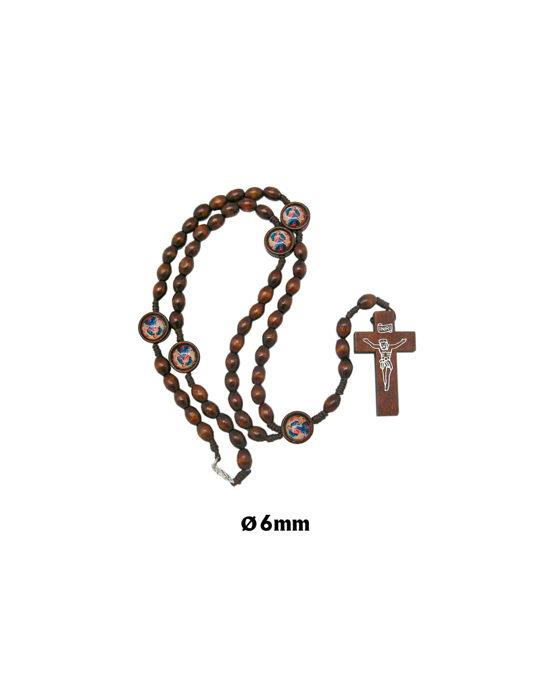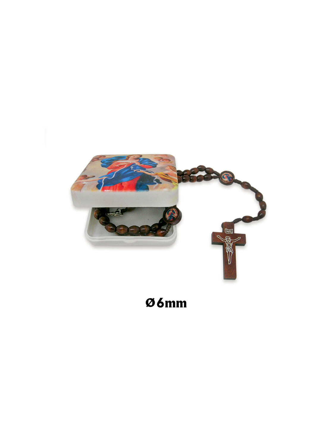 Rosario Madera Ovalado 6Mm Virgen Desatanudos En Caja Serigrafiada