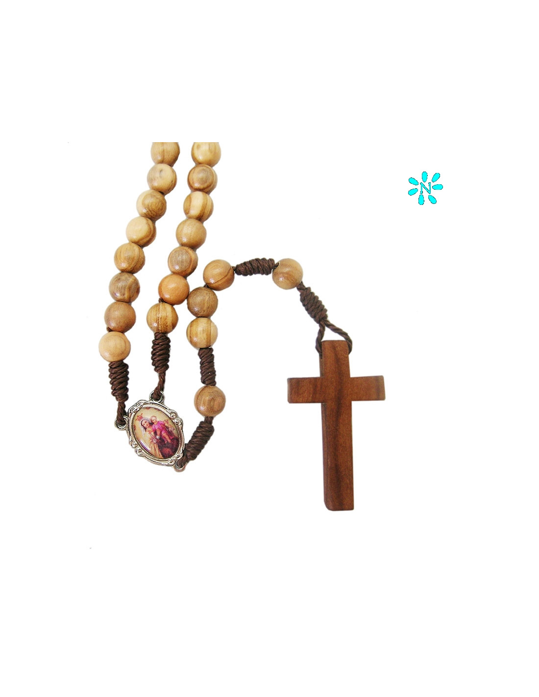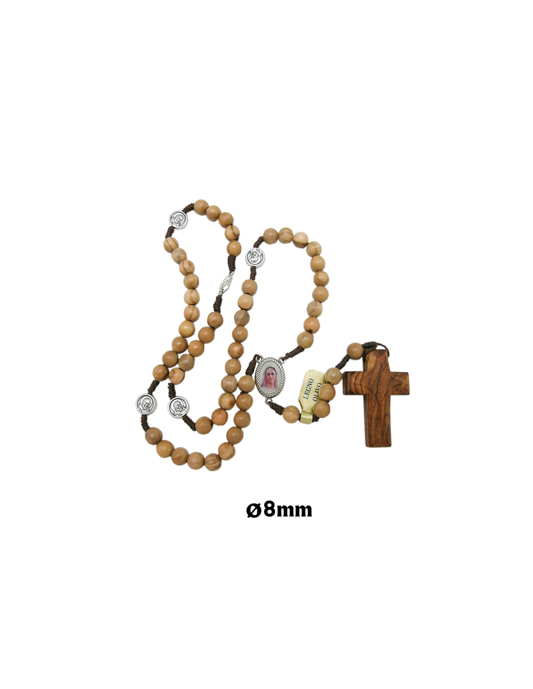 Rosario Madera 8Mm Olivo Padre Pio En Paters Con Cuerda Y Cruz