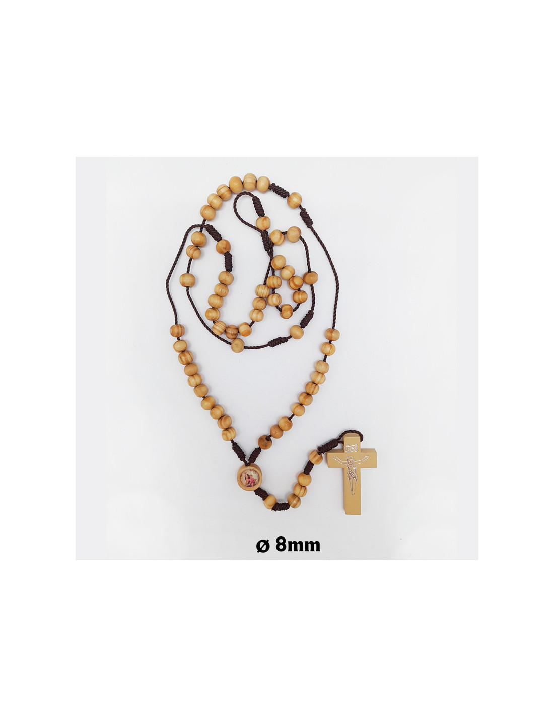 Rosario Madera 6Mm Tipo Olivo Con Cuerda Cruz Grabada Para Personalizar