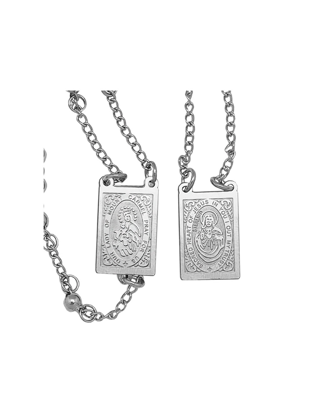 Rosario Acero escapulario 4mm con medallas 2x1.4cm cruz picos grabada laser san benito