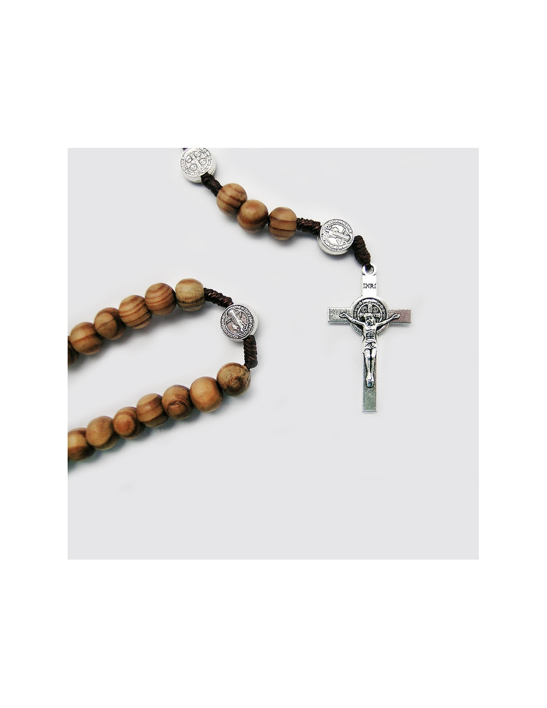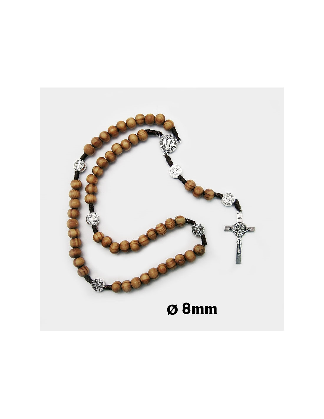 Rosario Madera San Benito 8mm Cuerda Y Paters Medalla San Benito