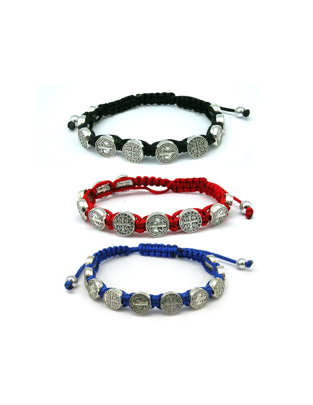 Pulsera Cuerda San Benito Con Medallas Metal 9mm Roja Y Colores Surtidos