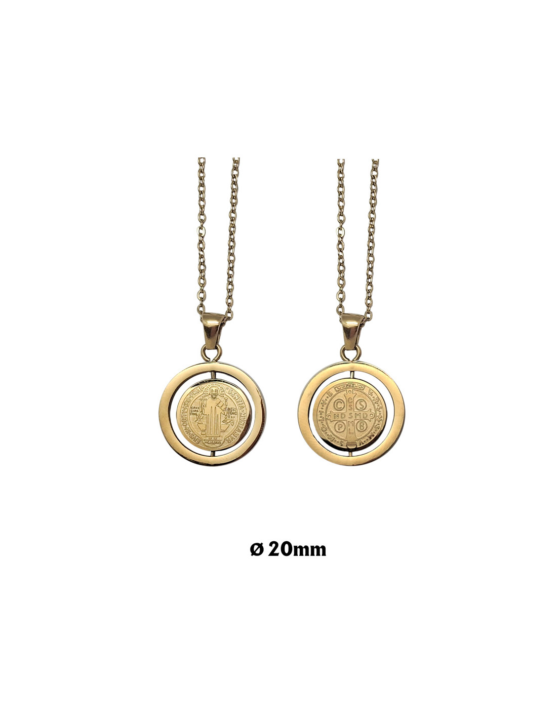 Medalla San Benito Acero Dorado 20Mm Giratoria Cadena De Acero Anilla Gruesa