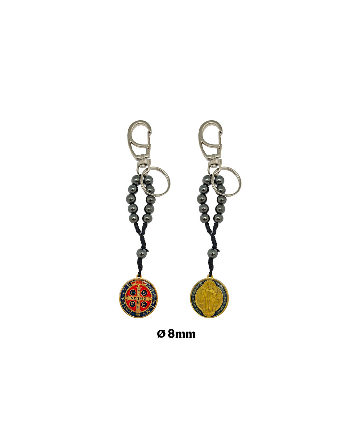 Llavero San Benito Decena Hematite 8Mm Con Medallon Esmaltado A Colores