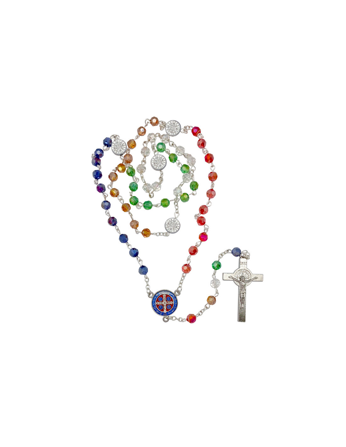 Rosario Cristal Tallado Misionero 6Mm San Benito En Maria Paters Y Cruz