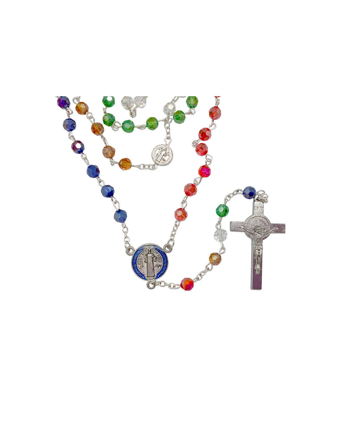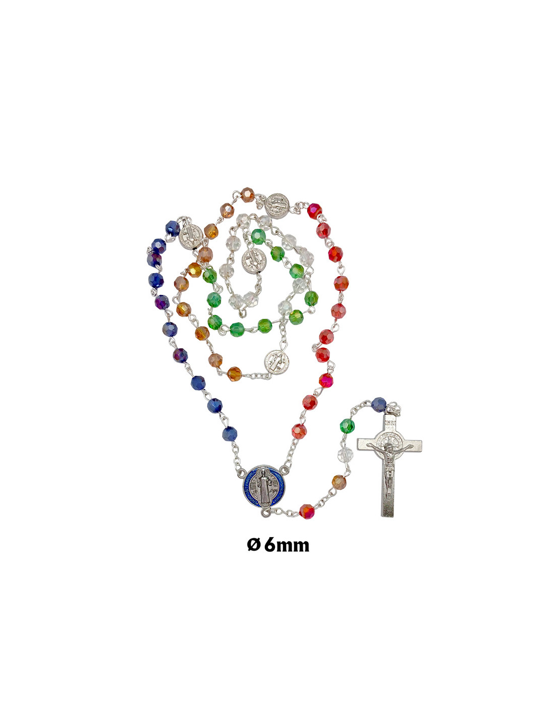 Rosario Cristal Tallado Misionero 6Mm San Benito En Maria Paters Y Cruz