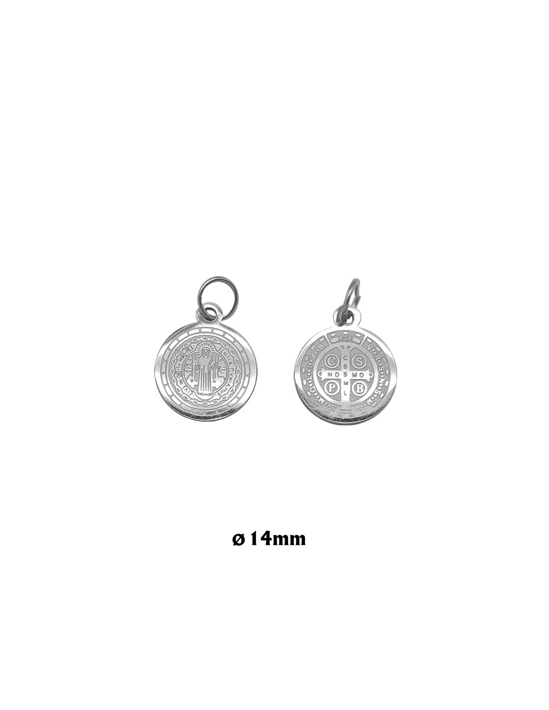 Medalla San Benito Acero 14Mm Grabada A Laser Con Anilla
