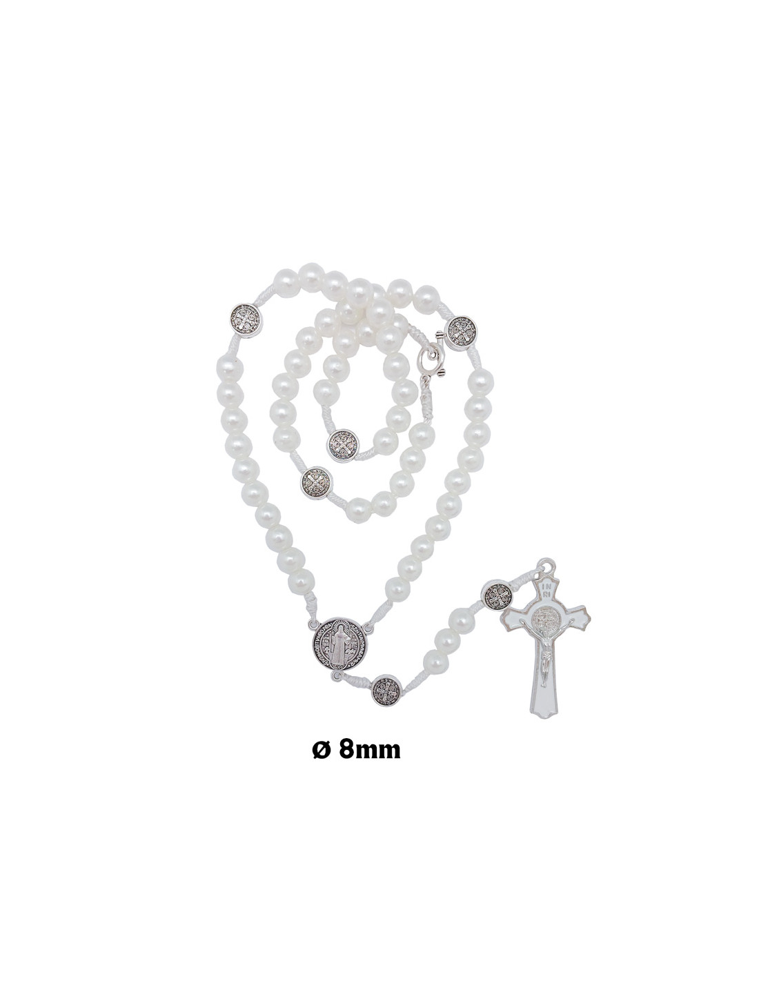 Rosario San Benito Plastico 7Mm Paters Y Cruz San Benito Y Cruz Esmaltada Blanca
